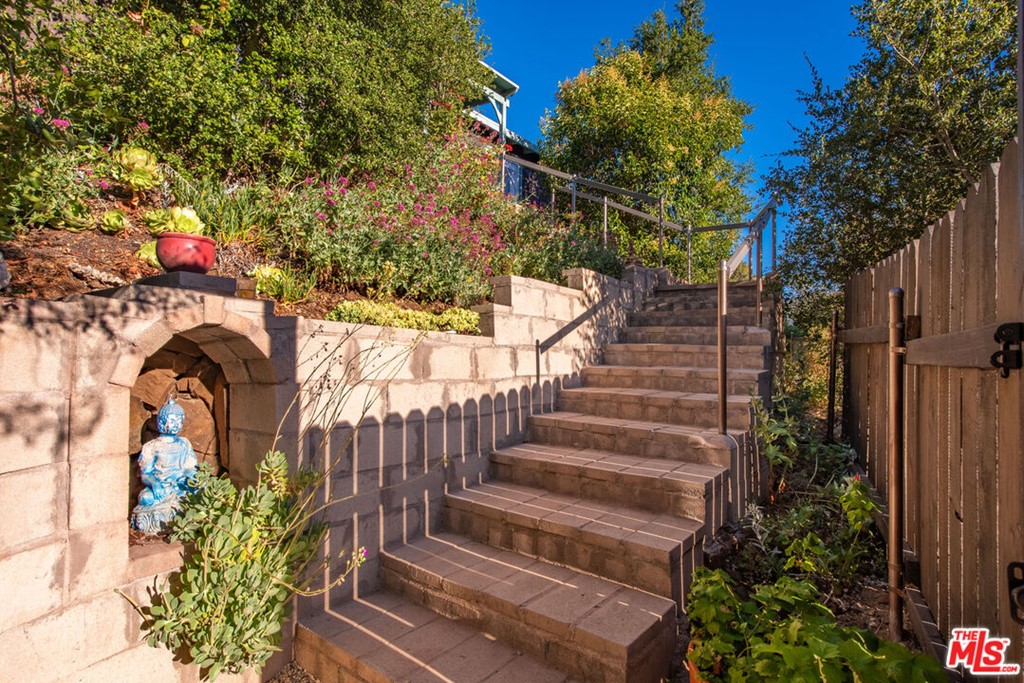 A storybook cottage with views in one of Topanga's most desirable neighborhoods. Perched on a hill overlooking Santa Monica Mountains in close proximity to Topanga State Park, this Post Office Tract 3 bedroom, 2 bath home was lovingly restored to reflect the whimsy and character of Topanga the way it used to be. Vintage details throughout include period light fixtures, hand-made cabinetry and built-ins, antique stained glass leaded windows from an ancient monastery to name a few.... everything was done by hand. Beautiful gardens provide plenty of outdoor space to enjoy a quiet afternoon reading a book or a fun evening with friends. The primary bedroom is flooded with light by a gorgeous diamond pane picture window and a set of french doors leading out to a brick patio with views of the mountains. The primary bath is adorned by custom hand cut tiles to create a unique fairy-tale look reminiscent of the South of France with a Topanga twist. Large family room is abundant with custom built-ins and opens to a living room and two additional bedrooms and bath, accented with custom Topanga Art Tile. Meandering garden paths lead to a hilltop studio or writer's retreat with breathtaking mountain views. This property embodies the Topanga artist spirit with every detail. Ideally located just minutes to the trendy shops and restaurants, state park trails and the beach this home is everything you've been waiting for.