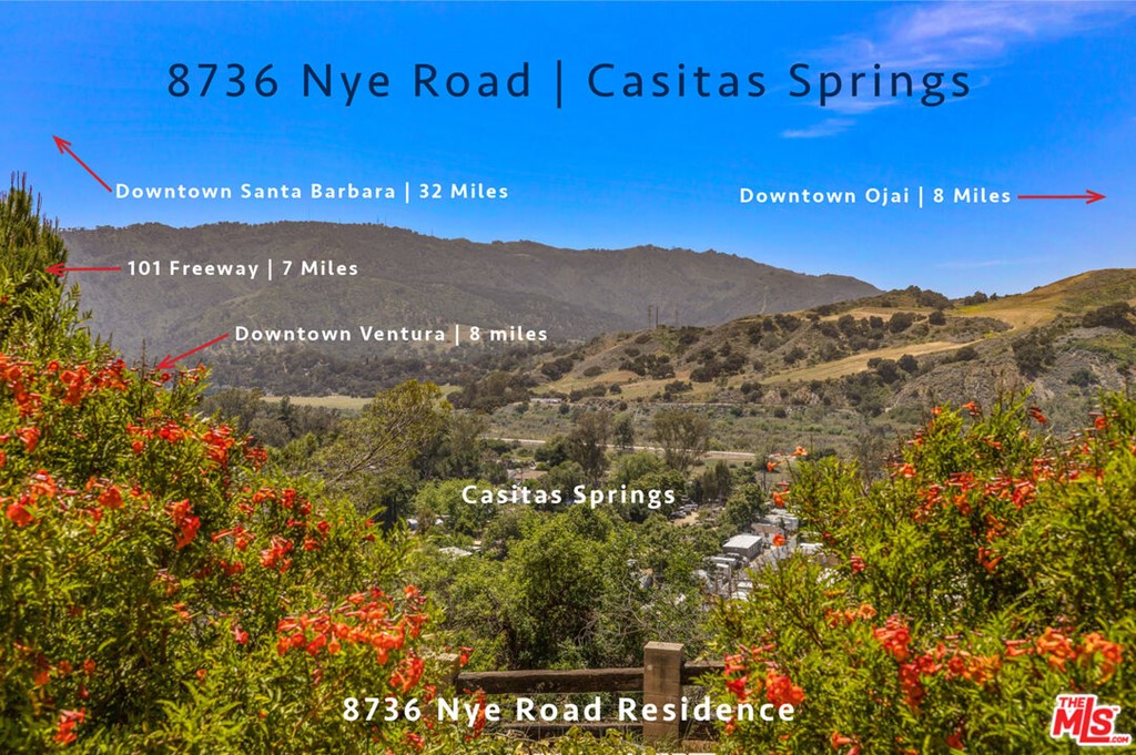 You can feel the spirit of "The Man in Black" as you traverse the private driveway towards the iconic house at 8736 Nye Road in Casitas Springs, California. Johnny Cash built the 4,500+ square foot home in 1961 as an escape from the raucous fame of his rock 'n roll lifestyle. He and his wife Vivian envisioned the rural estate - tucked in the hills between Ventura and Ojai - as a serene getaway for the couple and their three daughters for many years to come..If you know the rest of the story, you'll know that the homestead was not enough to save them from the forces that were starting to torment Johnny and threaten their marriage. But while they held onto that possibility, they poured their heart and soul into the house, making it irrevocably theirs, imbued with a combination of downhome country style and star-studded glitz.The story is told that Johnny bought the land and built the house to his exact specifications; walking the rooms and deciding on exact placement and layout. He created a secluded sanctuary, unique to this rural small-town enclave. Longtime locals recount stories of Johnny setting up speakers on the hillside outside the house, and playing concerts for the townspeople down below.The dramatic double-gabled house is set on nearly six private acres, nestled against a stunning natural backdrop. Inside, most rooms remain original to Johnny and Vivian's legacy, with painted ceilings imbued with glitter, an original wall-mounted turntable and intercom system, and curved brick fireplace in the family room. Custom wood built-ins throughout the kitchen and living room are period-specific and filled with charm.The wood-paneled studio where Johnny sequestered himself to write many of his hit songs is timelessly preserved, with high windows allowing the six-foot Johnny to peer out onto the grounds but providing him with complete privacy within. Johnny's habit of staying up all night writing music, then sleeping all day necessitated two distinct his-and-her master bedroom suites since their sleep habits were so different. The suites showcase their personalities: stark original period wallpaper and dark tiled shower in "his" bathroom contrast sharply with the pastel feminine sensibility in "hers". Even Johnny's famous black commode remains intact.The property overlooks the quaint village of Casitas Springs, with the majestic beauty of the Ojai Valley beyond. Soaring foothills frame the skyline in all directions. The grounds themselves feature majestic live oaks, verdant gardens, a sparkling swimming pool, and corrals and fields ready for horses, pigs, goats, chickens, or other rural uses. A picturesque hillside barbecue area remains where Johnny taught his daughters to shoot; spent shells occasionally turn up as modern remnants of their long-ago target practice. Other secluded areas of the property provide cloistered settings to entertain and enjoy the pristine natural surroundings.With five bedrooms and four-and-a-half baths plus an office, the rambling ranch-style house is ready for a new owner to either embrace the man in black's legacy and return this home to itsoriginal splendor, or to update it throughout with a nod to the past. Johnny and Vivian spent six years in this home making memories, welcoming another baby daughter, and trying to salvage their romance. The spirit of their perseverance lingers, and looms as large as Johnny's superstar presence is felt throughout modern musical history.